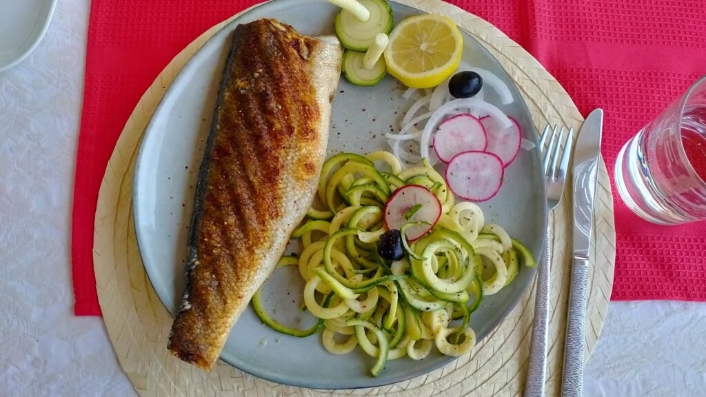 Salát jsem již uvedla samostatně a ryba je hotová do 10 minut .